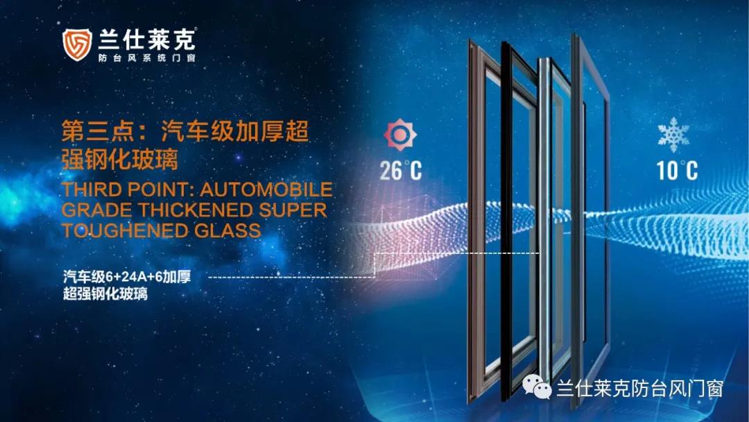 蘭仕萊克采用國家3C認(rèn)證和美國DOT、歐洲ECE、日本JIS認(rèn)證等,汽車級加厚6+24A+6超強(qiáng)鋼化玻璃,玻璃抗壓、抗沖擊性能好。鋼化玻璃技術(shù)領(lǐng)先行業(yè)技術(shù)標(biāo)準(zhǔn), 具有優(yōu)越的水密性和氣密性,有效防止氣流和水分侵蝕,保證窗戶擁有優(yōu)越的密封性。
