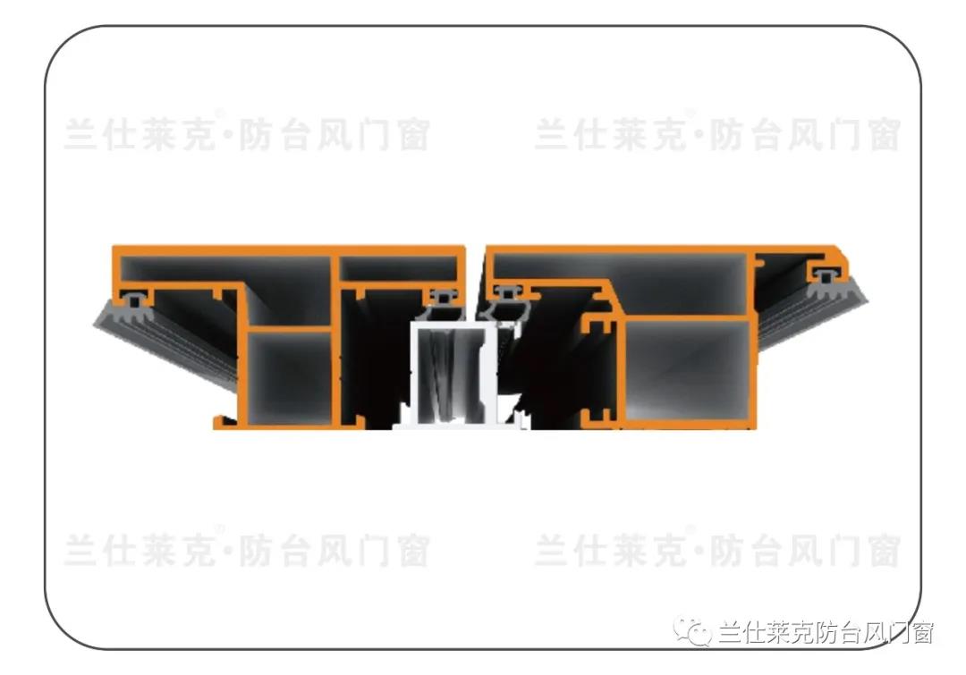 防風(fēng)1號(hào)主框,加強(qiáng)中柱玻璃扇外部受力結(jié)構(gòu)為雙腔體結(jié)構(gòu),比市面上常見的單面腔體受力高達(dá)3~4倍,卡扣式螺絲固定壓線,使壓線貼合固定玻璃更加穩(wěn)固,更能抗壓,能輕松抵御12級(jí)臺(tái)風(fēng),可做到最大玻璃尺寸高(3500mmx寬7000m)窗外立面設(shè)計(jì)為平面,沒有排水槽,更美觀。